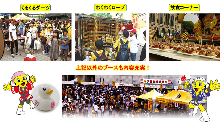 ファミリーで楽しめるゲームコーナー、たこ焼きなどの飲食コーナーが盛りだくさん!ゲーム景品ではタイガースグッズをプレゼント!