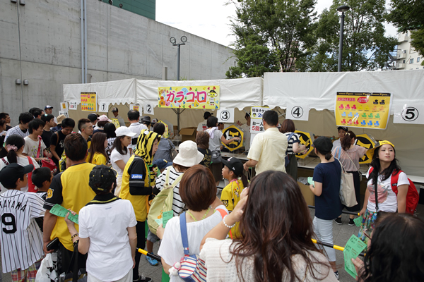 開催1日目となった27日(土)は、早くから大勢の方にご来場いただき、人気のあひるちゃんが入った「ガラコロ」や、タイガースグッズが当たる「虎くじ」「わくわくロープ」などのオリジナルのブースには、長い列が出来るほどの大盛況となりました。