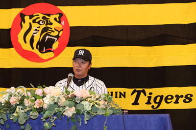 23日(金)、福原忍選手が今季限りでの引退を発表し、同日、西宮市内のホテルにて会見を行いました。