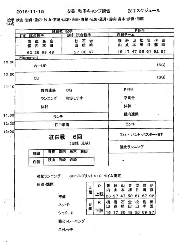 | 11/16(水) | 練習メニュー | 練習メニュー |