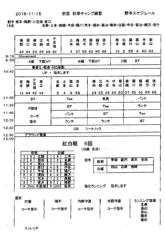 | 11/15(火) | 練習メニュー | 練習メニュー |