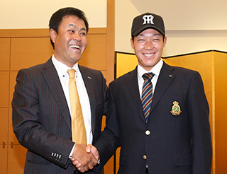 7日(月)、栃木県内のホテルにて、ドラフト1巡目で指名しました大山悠輔選手との入団交渉を行い、仮契約が完了いたしましたのでお知らせいたします。