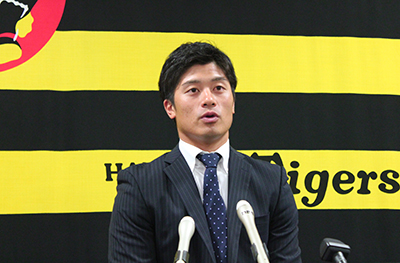 17日(木)、坂本誠志郎選手が球団事務所での契約更改終了後に会見を行いました。