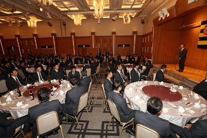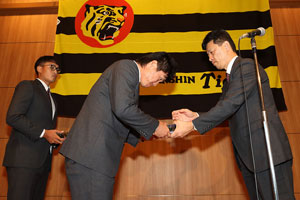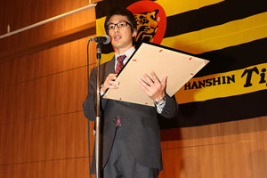 22日(火)、大阪市内のホテルに坂井オーナー、四藤球団社長、金本監督をはじめ、コーチ、選手、職員が一同に集まり「2016年度阪神タイガース納会」を行いました。