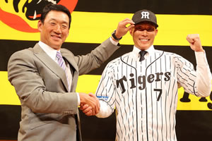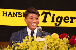 ご承知の通り、糸井選手は走攻守に優れた球界のトッププレーヤーでございまして、その糸井選手が阪神タイガースに入団するということを大変嬉しく思っております。