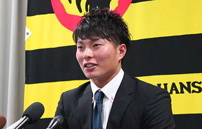28日(月)、北條史也選手が球団事務所での契約更改終了後に会見を行いました。