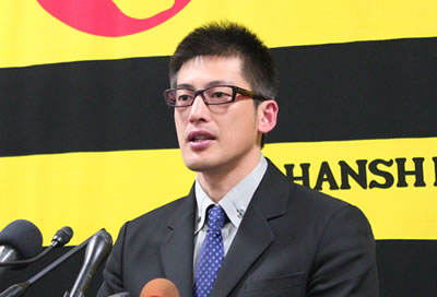 2日(金)、能見篤史選手が球団事務所での契約更改終了後に会見を行いました。