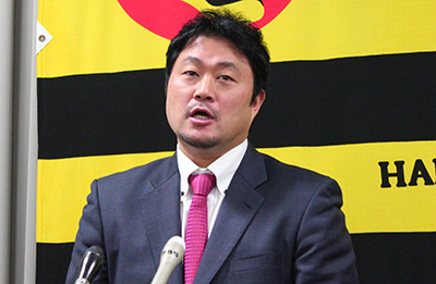 19日(月)、安藤優也選手が球団事務所での契約更改終了後に会見を行いました。