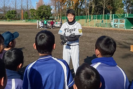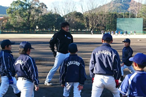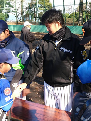 28日(水)、岩貞祐太選手が、熊本県民総合運動公園で行われた必由館高校野球部OB会主催「熊本地震復興プロジェクト 野球教室」に参加しました。