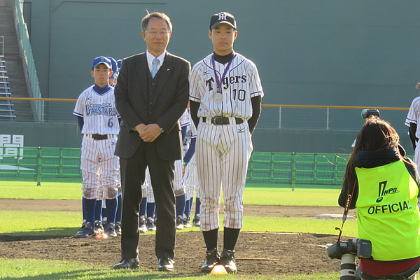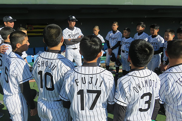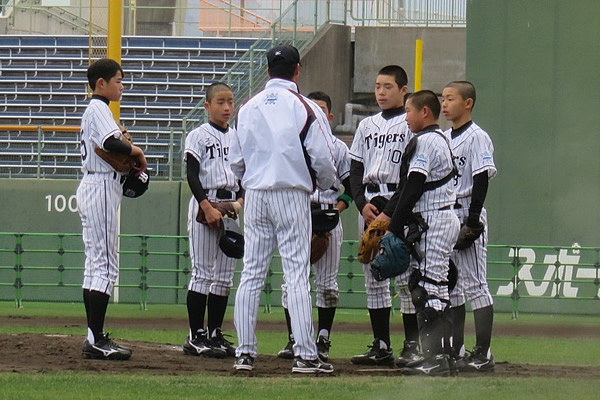 八木裕監督率いる阪神タイガースジュニアチームは、グループリーグを2勝0敗で勝ち抜き、決勝トーナメントで北海道日本ハムファイターズジュニアチームを破り準決勝を突破。