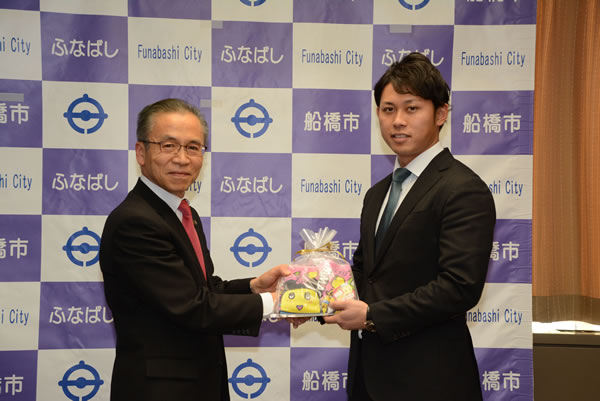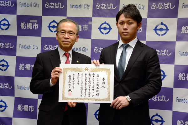 6日(金)、髙山俊選手が船橋市特別功労賞を受賞し、船橋市役所(千葉県)にて行われた授与式に出席しました。