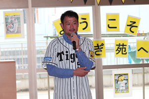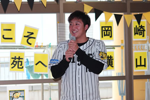 13日(金)、岡﨑太一選手と横山雄哉選手が、社会福祉法人四天王寺福祉事業団 医療福祉センター「四天王寺和らぎ苑」を訪問しました。