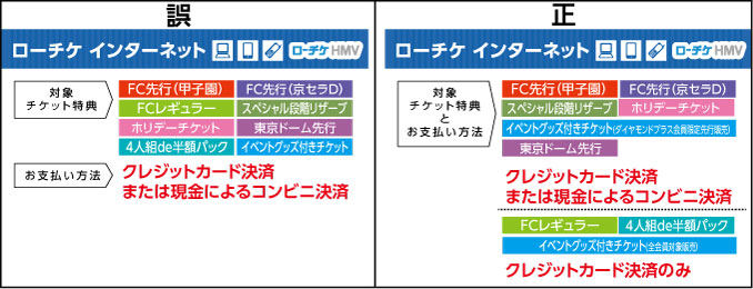 | 「対象チケット特典」および「お支払い方法」箇所 |