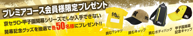 スマホ携帯サイトではプレミアコースにご加入頂いている皆様を対象に、京セラドーム大阪、阪神甲子園球場での開幕シリーズでしか入手できない開幕記念グッズを抽選で各50名様にプレゼントいたします。虎ファン必見のコンテンツ満載のプレミアコース、ご加入がまだの方も是非この機会にご加入下さい。