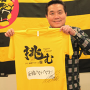 入場者プレゼントのTシャツに「挑む」ことを書いて共に戦おう!