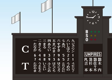 来場したお子さまが、活躍した選手(ヒーロー)の名前を少しでも覚えやすく、発しやすくしたい、との想いから、スコアボードの選手名を「ひらがな」で掲出します。甲子園史上、初の試みです。