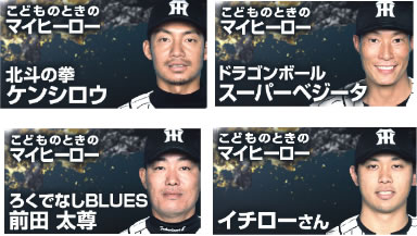タイガース選手が登場する際に、ビジョンで各選手の子どもの頃のマイヒーローを紹介します。「納得!もしくは意外!?」なマイヒーローが。