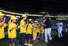 ヒーローインタビューの直後、歓喜の渦のグラウンドで!