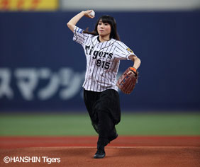 昨シーズン、勝利試合後などに球場ビジョンで放映した『みんなで六甲おろし』。各界のタイガースファンの著名人が曲に合わせて続々登場し、大きな話題となりました。2017年第1弾の矢井田瞳さんがリードボーカルをとった新バージョンをセレモニー冒頭でお披露目!場内も曲と共に大合唱!多いに盛り上がりました。