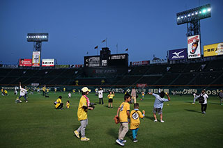 また試合終了後には、事前応募で当選された300名の親子ペアが、甲子園球場の天然芝の上で親子キャッチボールをしました。普段入ることのできない甲子園の芝生の上でのキャッチボールを親子で楽しんでいただきました。