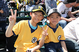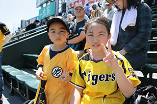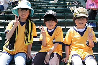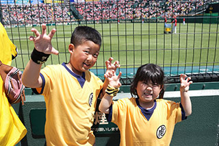 広島東洋カープに見事勝利した5日は、試合終了後にちびっこ達が興奮冷めやらぬグランドで、ヒーロー選手と勝利のハイタッチ!