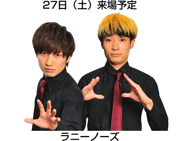 ステージの特別ゲストとして、吉本芸人の「ラニーノーズ」と「アキナ」が来場決定!