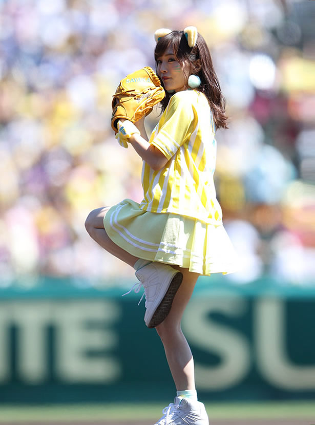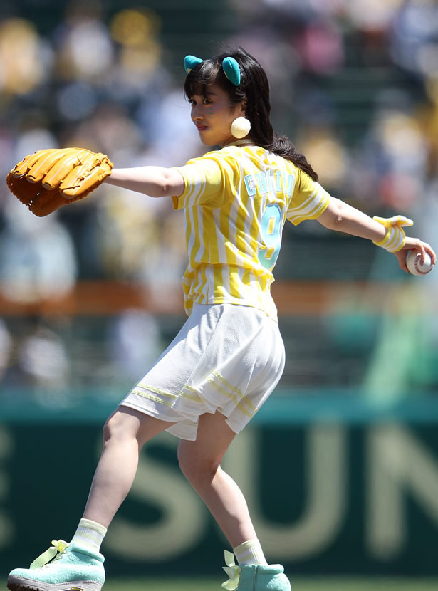 TORACO応援隊長のNMB48川上千尋さん、山本彩さんがそれぞれファーストピッチセレモニー、始球式に登場。