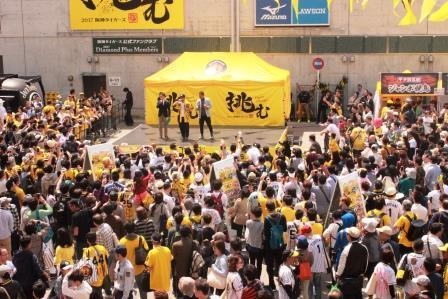恒例の甲子園外周ビアガーデンで、勝利を願って乾杯!!