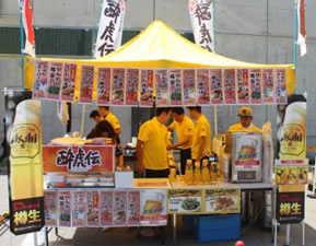 ![]() ▲イエローヘルメット商品 (各650円) | ![]() ▲ウル辛 焼きそば (500円) | ![]() ▲ひんやり枝豆 ウル虎盛り (500円) | ![]() ▲わらじ串カツ(500円) |