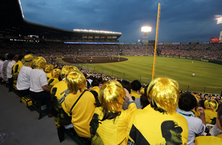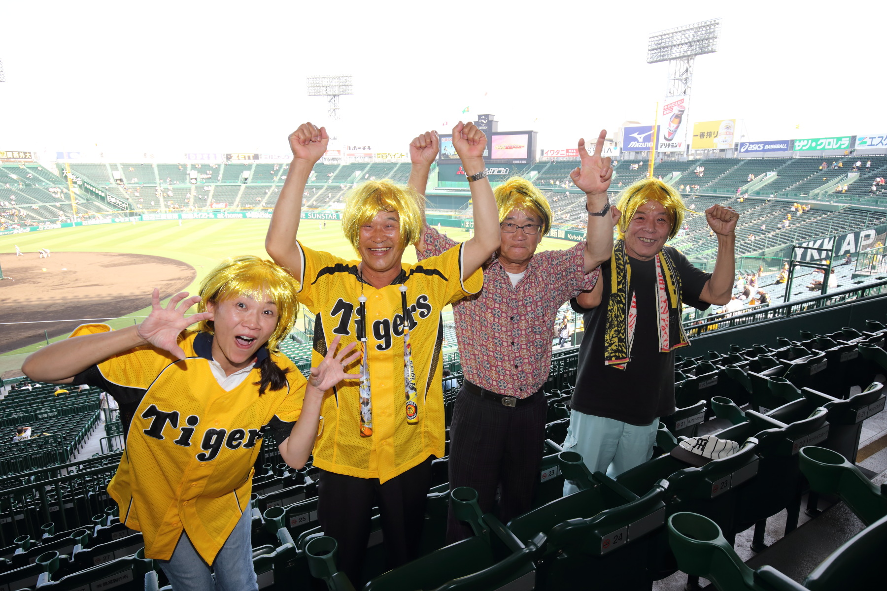 5回裏終わりには、虎ウィッグをかぶって、みんなで「六甲おろし」を大合唱!