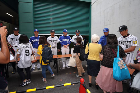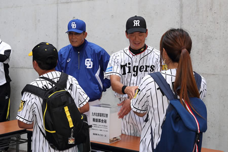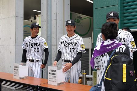 阪神タイガースからは、金本知憲監督、福留孝介選手、能見篤史選手、鳥谷敬選手、メッセンジャー選手、糸井嘉男選手、上本博紀選手、大和選手、伊藤和雄選手、梅野隆太郎選手、岩貞祐太選手、小野泰己選手の12名が、OB会からは川藤幸三OB会長、岡義朗氏、上田二朗氏、藪恵壹氏らが募金へのご協力を呼びかけさせていただきました。