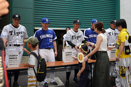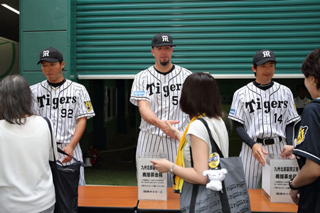 12日(水)、阪神甲子園球場での対中日ドラゴンズ戦の試合前に、阪神タイガースと中日ドラゴンズの両監督、選手、および阪神タイガースOB会による九州北部豪雨で被害に遭われた方々への支援のための義援金募金活動を実施いたしましたので、以下の通りご報告いたします。