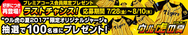 - プレミアコース会員様限定!ウル虎の夏限定オリジナルジャージを手に入れるラストチャンス!