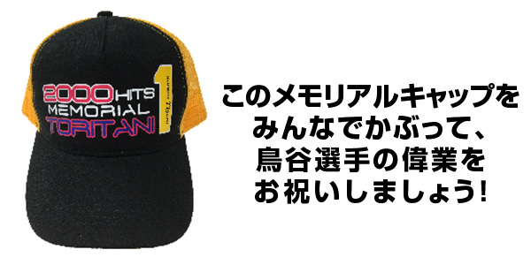 試合開始2時間後までにご入場の入場券をお持ちのお客様全員に「鳥谷敬選手 通算2000本安打達成メモリアルキャップ」をプレゼントします。