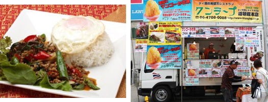 | (1)なかにし家(唐揚げ) | (2)クンテープ道頓堀本店(タイ料理) |