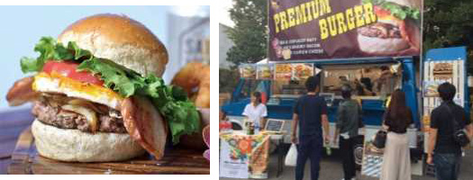 | 肉厚本格バーガーとオシャレなキッチンカー | シュリンプBBQ串やロコモコなどクセになる料理盛りだくさん | 本場スペイン産のジューシーなイベリコ黒豚丼 |