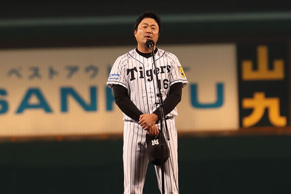 「先ずはじめに、このような盛大な引退セレモニーを用意してくださいました球団関係者の皆様、チームの皆様、阪神園芸の皆様、本当にありがとうございます。