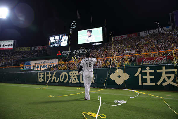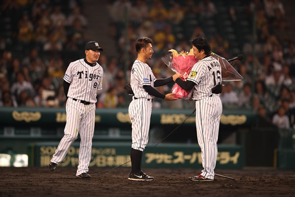 10日(火)、今シーズンのペナントレース最終戦となった対中日ドラゴンズ戦終了後の阪神甲子園球場にて、今季限りで現役を引退する安藤優也選手の引退セレモニーを実施しました。