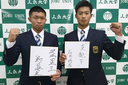 28日(土)、26日(木)に行われた「プロ野球ドラフト会議 supported by リポビタンD」で、阪神タイガースが4巡目で指名した島田海吏選手、育成ドラフト1巡目で指名した石井将希選手へ、佐野統括スカウト、吉野スカウトらが挨拶に伺いました。