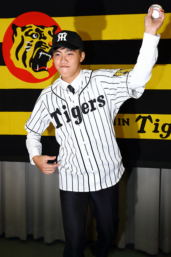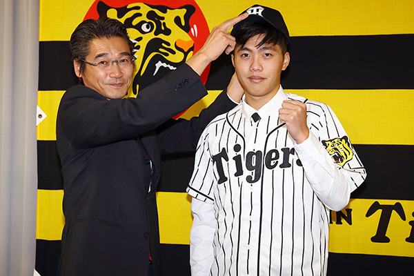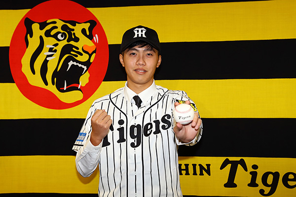 真っ直ぐのキレ、スライダー、カーブ、チェンジアップと多彩な変化球を持っておりますので、本当に近い将来、阪神タイガースの戦力としてローテーションに入ってくれることを期待しての獲得であります。