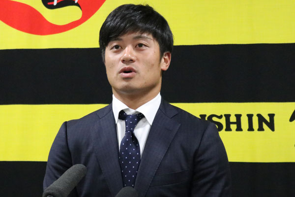 21日(火)、坂本誠志郎選手が球団事務所での契約更改終了後に会見を行いました。