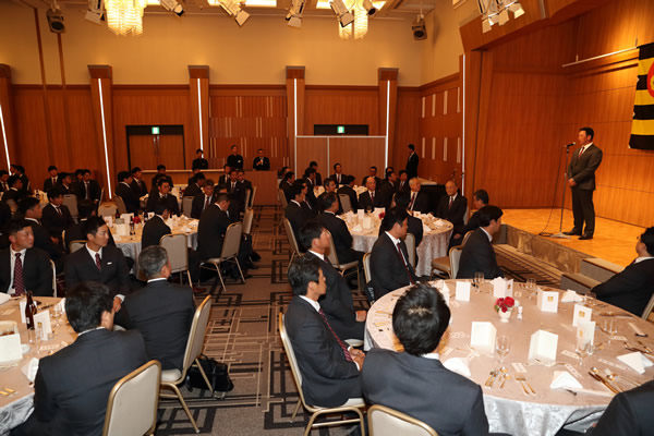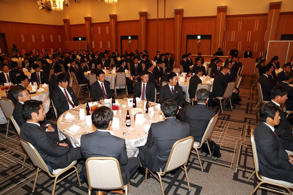 22日(水)、大阪市内のホテルに坂井オーナー、四藤球団社長、金本監督をはじめ、コーチ、選手、職員が一同に集まり「2017年度阪神タイガース納会」を行いました。