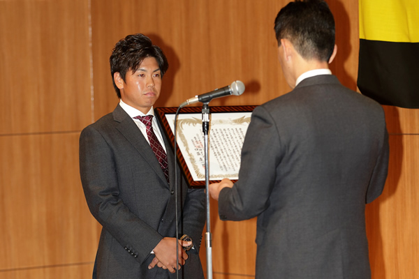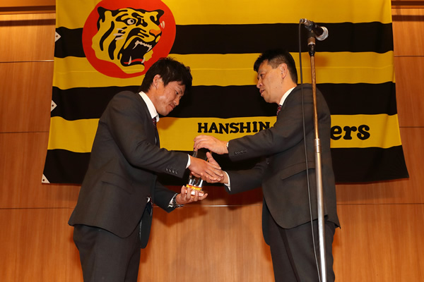 球団選定ファーム年間最優秀選手の陽川尚将選手を表彰