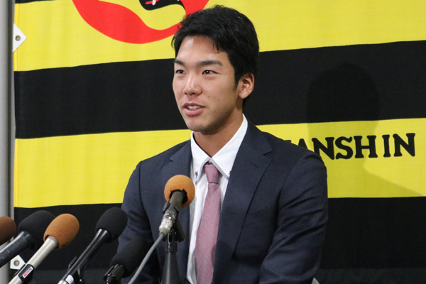 28日(火)、小野泰己選手が球団事務所での契約更改終了後に会見を行いました。