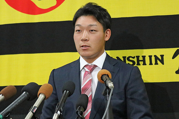 28日(火)、大山悠輔選手が球団事務所での契約更改終了後に会見を行いました。