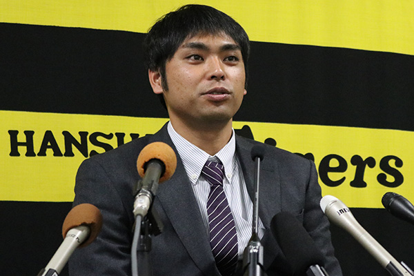 7日(木)、桑原謙太朗選手が球団事務所での契約更改終了後に会見を行いました。