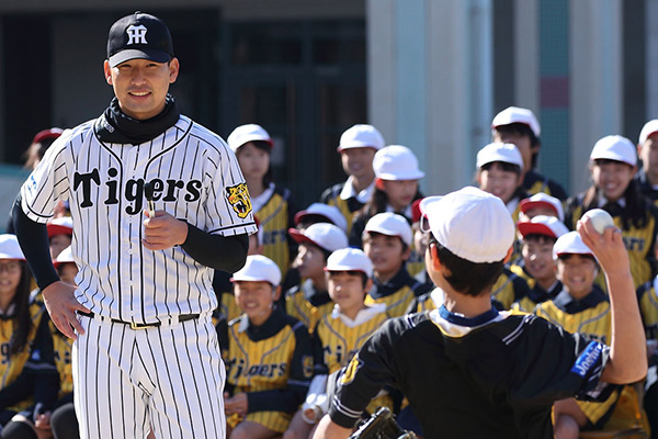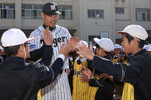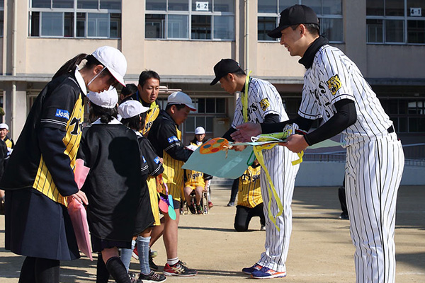 7日(木)、大阪府の『トップアスリート小学校ふれあい事業』の一環として、岩崎優選手と原口文仁選手が大阪市立泉尾東小学校を訪問しました。