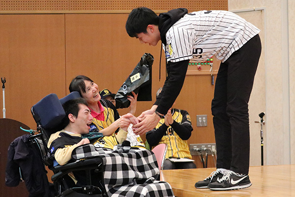 21日(木)、陽川尚将選手、才木浩人選手が伊丹心身障害対策市民懇談会のクリスマス会に参加しました。