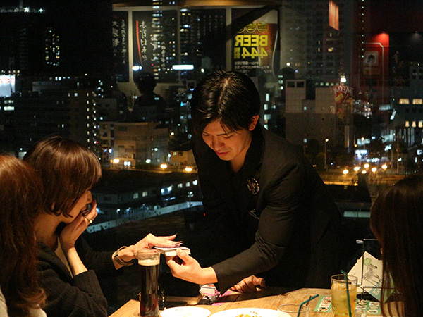 イケメンマジシャンによるマジックで、TORACOもフロアで大はしゃぎ!