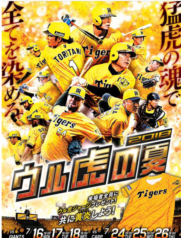 - ・選手が黄色の「ウル虎の夏2018ユニフォーム」を着用。